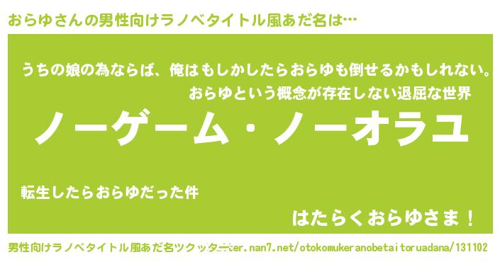 | ヒーロー風カッコイイあだ名 | 『慈愛の使者おらゆ』『ネオオラユ』 |