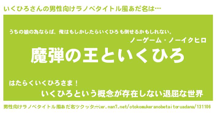 | ヒーロー風カッコイイあだ名 | 『仮面イクダー』『ウルトラいくひろマン』 |