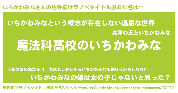| 女子向けラノベタイトル風あだ名 | 『いちかわみななんてお断りですっ。』 |