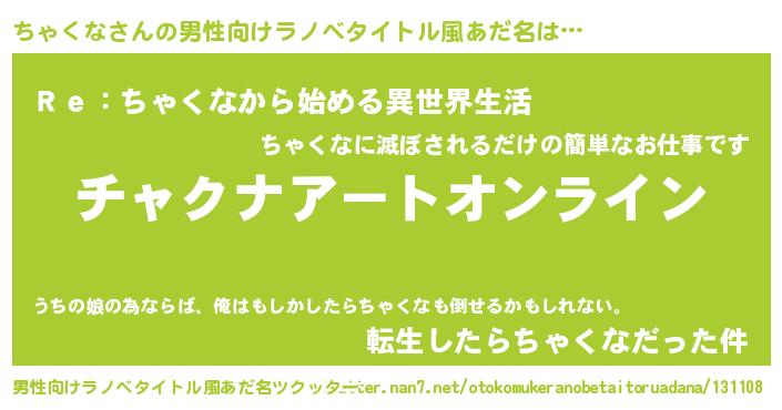 | 意味不明あだ名 | 『ペロリンちゃくな』『自称ちゃくな』 |