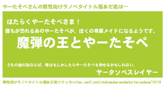 | 意味不明あだ名 | 『住所不定無職やーたそぺ(65歳)』 |