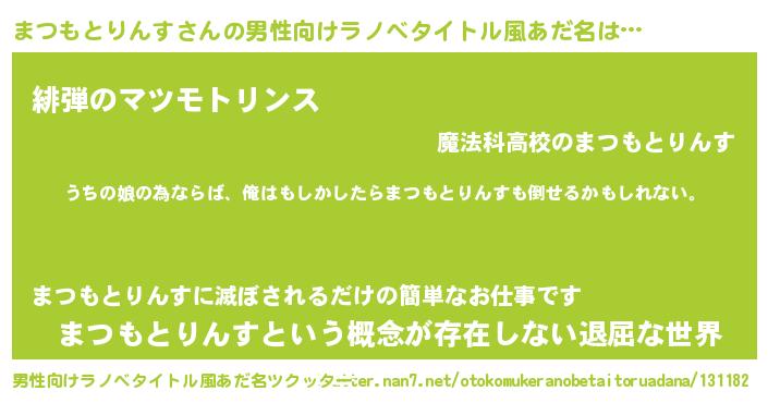 | 女子向けラノベタイトル風あだ名 | 『まつもとりんすの婚約者』 |
