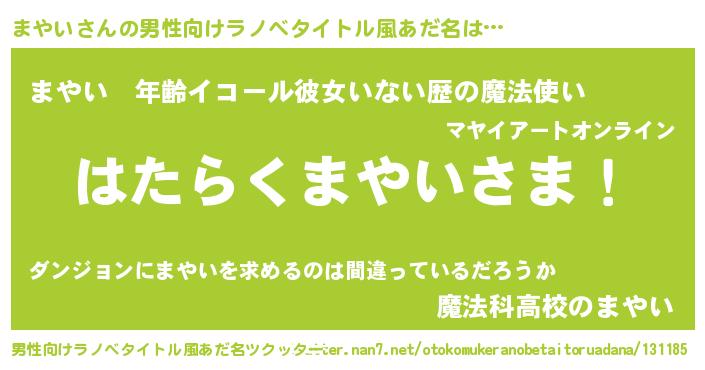 | ヘコむあだ名 | 『まやっふぃ~』『まやお』『豆乳』 |