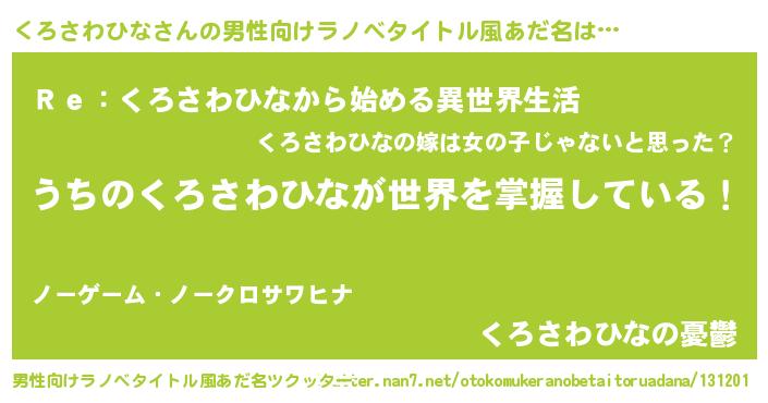 | 女子向けラノベタイトル風あだ名 | 『男装くろさわひなの憂鬱な任務』 |