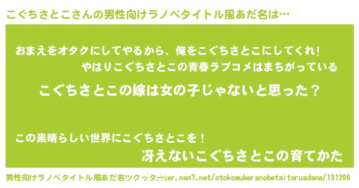 | 女子向けラノベタイトル風あだ名 | 『こぐちさとこの卵を拾いまして』 |