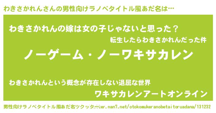 わきさかれんさんの男性向けラノベタイトル風あだ名をツクッター!
