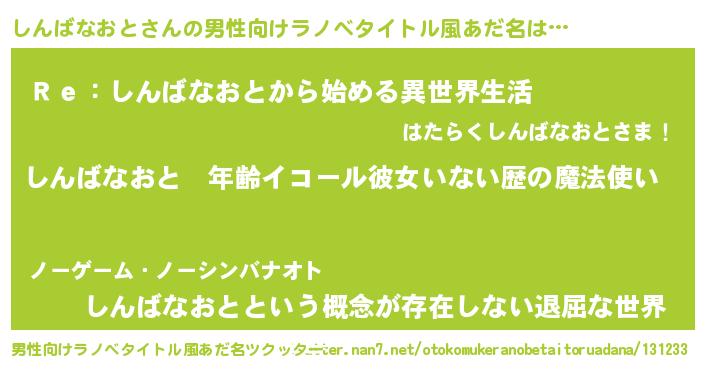 | ヘコむあだ名 | 『しんばなおと(苦笑)』『しんにー』 |