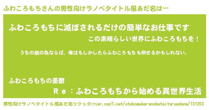 | 胡散臭い通販商品みたいなあだ名 | 『運命の人と巡り会える高級そうな皿…その名も「ふわころもち」』 |