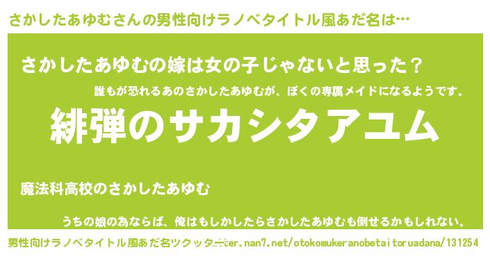 さかしたあゆむさんの男性向けラノベタイトル風あだ名をツクッター!