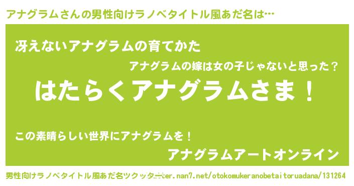 | ヒーロー風カッコイイあだ名 | 『スーパーアナグラム』『魔戒騎士アナ』 |