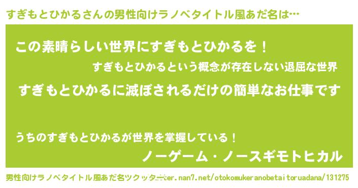 | 胡散臭い通販商品みたいなあだ名 | 『あなたにだけ特別に提供する世界で10本だけ現存している希少なブランデー…その名も「すぎもとひかる」』 |