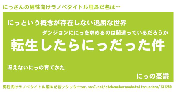 | 胡散臭い通販商品みたいなあだ名 | 『来世でも幸せになれる健康食品…その名も「にっ」』 |
