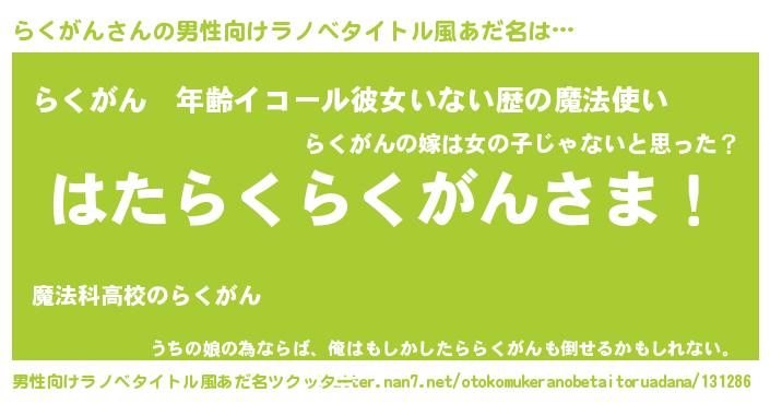 | ヒーロー風カッコイイあだ名 | 『ウルトラらくがんマン』『天弓騎士ラク』 |