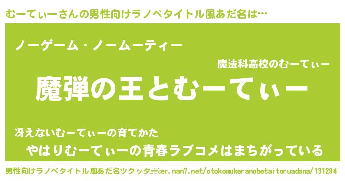 | 意味不明あだ名 | 『住所不定無職むーてぃー(86歳)』 |