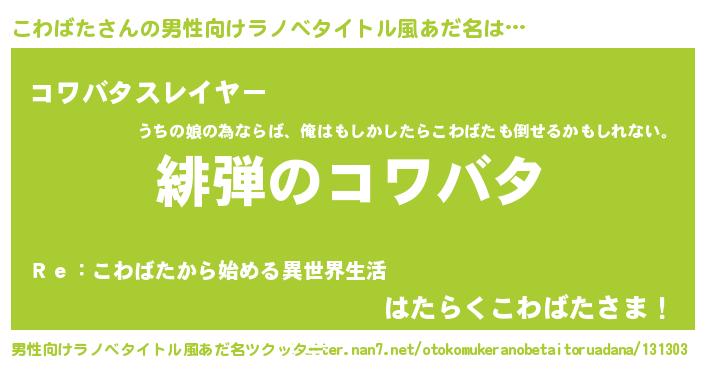 | ヘコむあだ名 | 『牛乳』『こわばた(苦笑)』 |