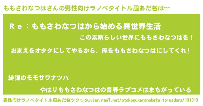 | 女子向けラノベタイトル風あだ名 | 『ももさわなつは恋絵巻』 |