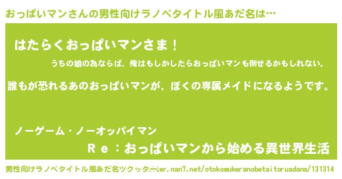 | 胡散臭い通販商品みたいなあだ名 | 『前代未聞の健康食品…その名も「おっぱいマン」』 |