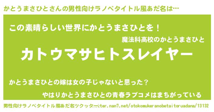 | 肩書あだ名 | 『かとうまさひと上級大将』 |