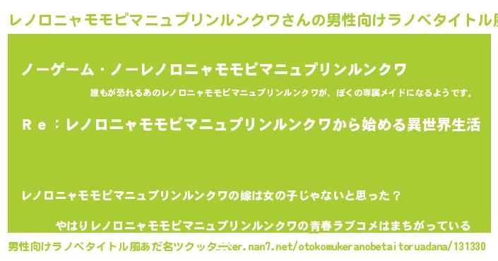 | 女子向けラノベタイトル風あだ名 | 『レノロニャモモピマニュプリンルンクワストレイドッグス』 |