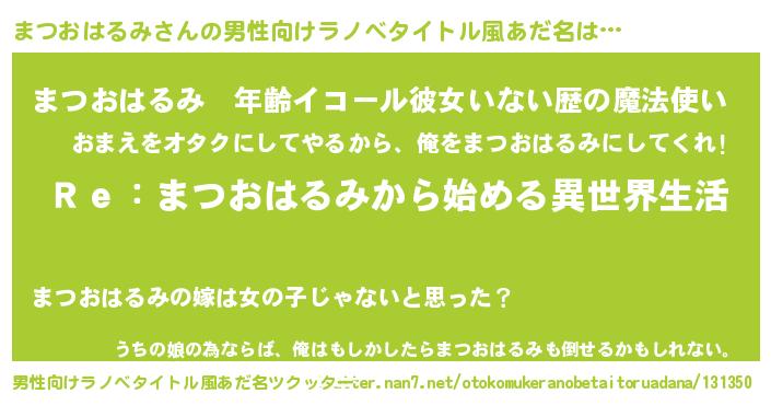 | 胡散臭い通販商品みたいなあだ名 | 『テレビで話題のアガリクス…その名も「まつおはるみ」』 |