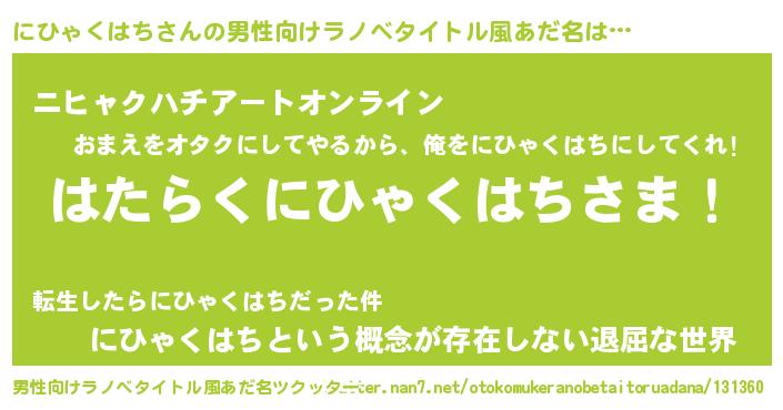 | 胡散臭い通販商品みたいなあだ名 | 『必ず成功する水晶球…その名も「にひゃくはち」』 |