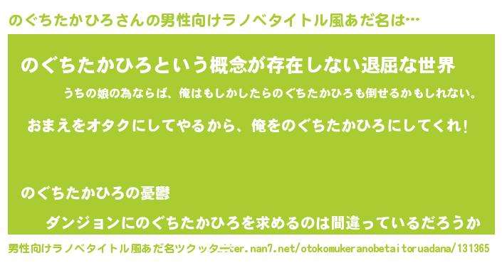 | 女子向けラノベタイトル風あだ名 | 『のぐちたかひろ夫妻のなれそめ』 |