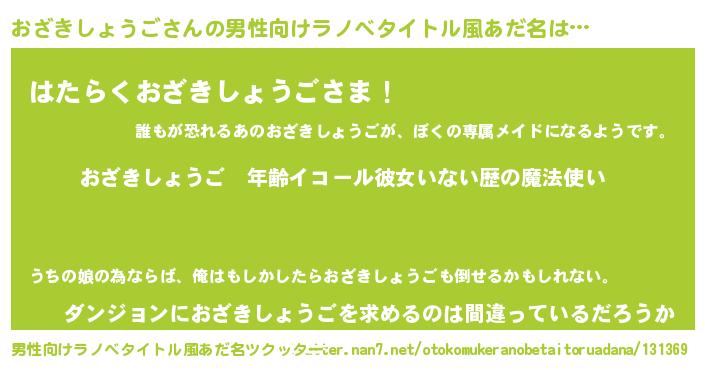 | 女子向けラノベタイトル風あだ名 | 『おざきしょうごの玉の輿計画!』 |