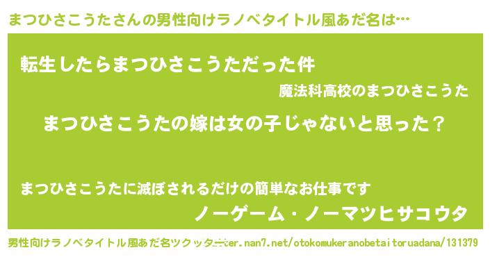 | 女子向けラノベタイトル風あだ名 | 『まつひさこうたの卵を拾いまして』 |