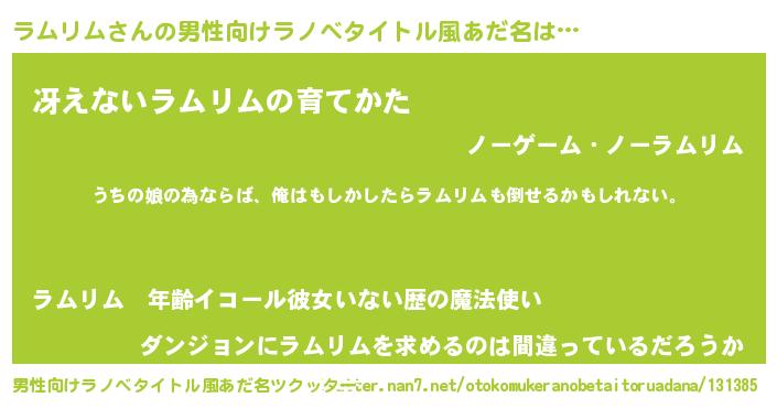 | 女子向けラノベタイトル風あだ名 | 『ラムリムの婚約者』『ラムリム恋絵巻』 |