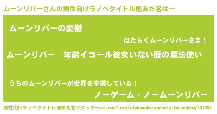 | 女子向けラノベタイトル風あだ名 | 『ムーンリバーの玉の輿計画!』 |