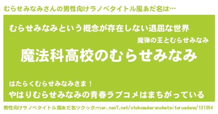 | 女子向けラノベタイトル風あだ名 | 『むらせみなみアンティーク』 |