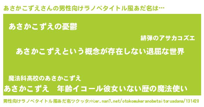 | 意味不明あだ名 | 『永久保存あさかこずえ』 |