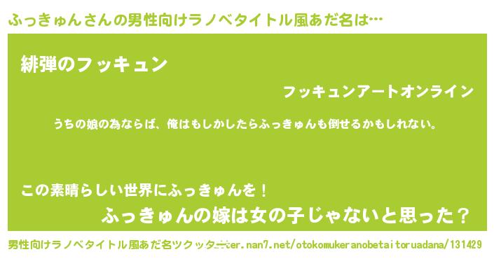 | 女子向けラノベタイトル風あだ名 | 『ふっきゅんの婚約者』 |