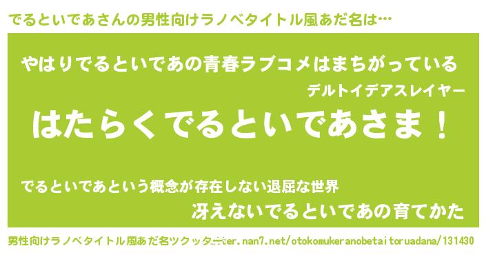 | 意味不明あだ名 | 『でるといであフォーエバー』 |