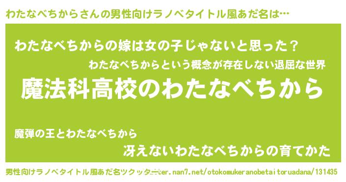 | 女子向けラノベタイトル風あだ名 | 『わたなべちからなんてお断りですっ。』 |