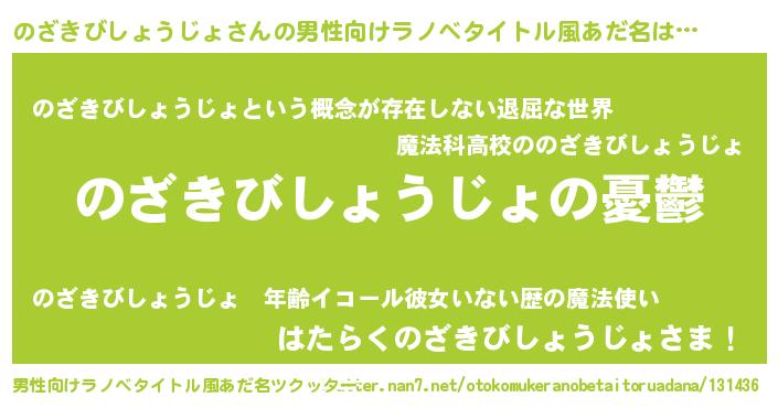 | 女子向けラノベタイトル風あだ名 | 『のざきびしょうじょ姫と円卓の騎士』 |