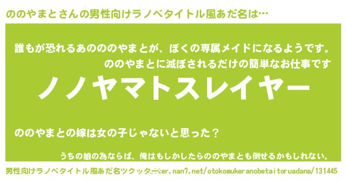 | 胡散臭い通販商品みたいなあだ名 | 『絶対に幸福をもたらす水素水…その名も「ののやまと」』 |