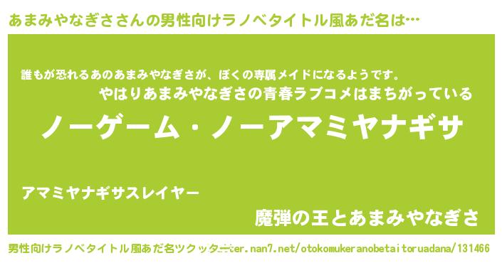 | ヘコむあだ名 | 『あまみやなぎさ(笑)』『牛乳』 |