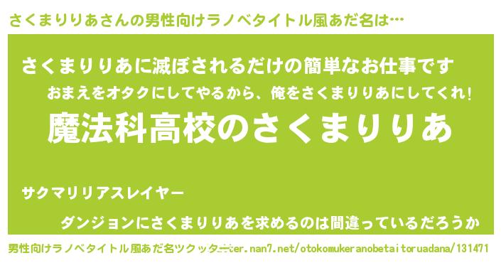 | 女子向けラノベタイトル風あだ名 | 『さくまりりあなんてお断りですっ。』 |