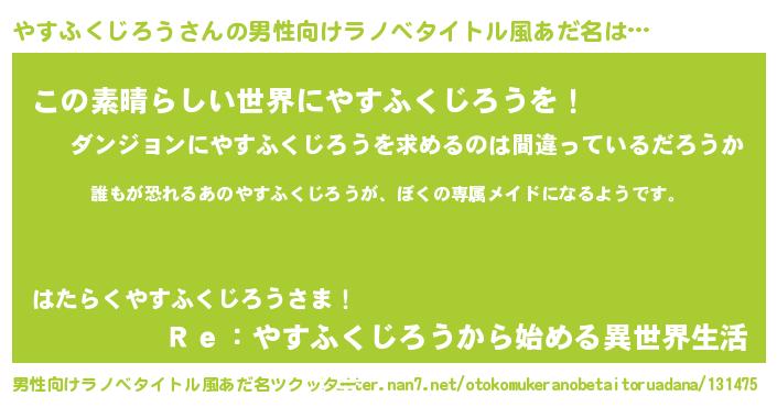 | 女子向けラノベタイトル風あだ名 | 『異世界でカフェやすふくじろうを開店しました。』 |
