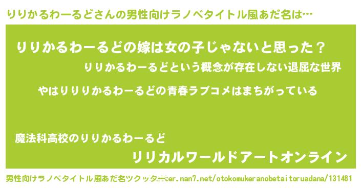 | 女子向けラノベタイトル風あだ名 | 『りりかるわーるどの雑貨屋さん』 |
