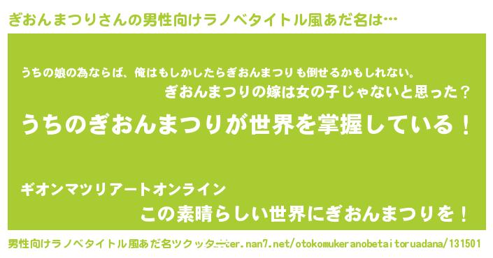 | 胡散臭い通販商品みたいなあだ名 | 『運命の人と巡り会える高級そうな壺…その名も「ぎおんまつり」』 |