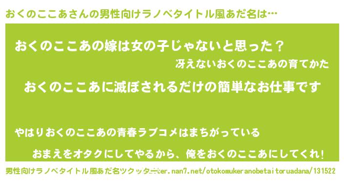 | 意味不明あだ名 | 『とにかく怪しいおくのここあ』 |