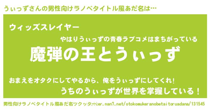 | ヒーロー風カッコイイあだ名 | 『仮面ウィダー』『ウルトラうぃっずマン』 |