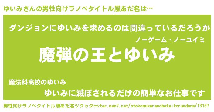| 女子向けラノベタイトル風あだ名 | 『ゆいみが死なない童話 林檎のゆいみの診療簿』 |