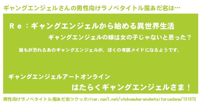 | 女子向けラノベタイトル風あだ名 | 『異世界でカフェギャングエンジェルを開店しました。』 |