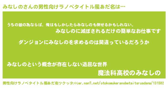 | 胡散臭い通販商品みたいなあだ名 | 『信頼と実績のペンダント…その名も「みなしの」』 |