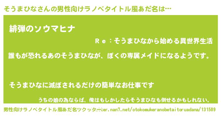 | 女子向けラノベタイトル風あだ名 | 『異世界でカフェそうまひなを開店しました。』 |