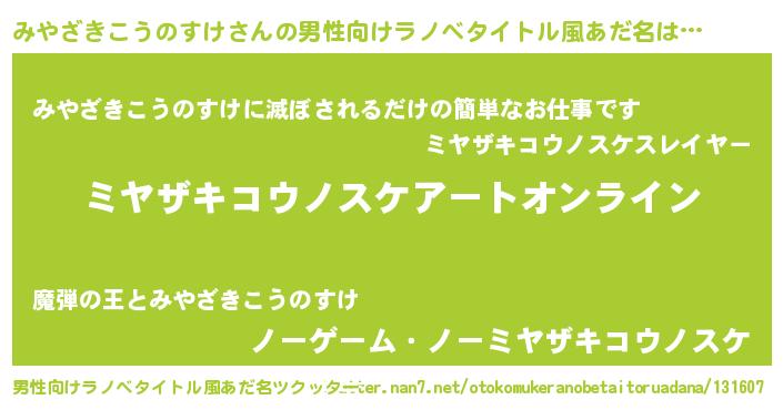 | 胡散臭い通販商品みたいなあだ名 | 『億万長者になれるブレスレット…その名も「みやざきこうのすけ」』 |