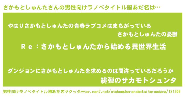 | 女子向けラノベタイトル風あだ名 | 『闇のさかもとしゅんた』 |